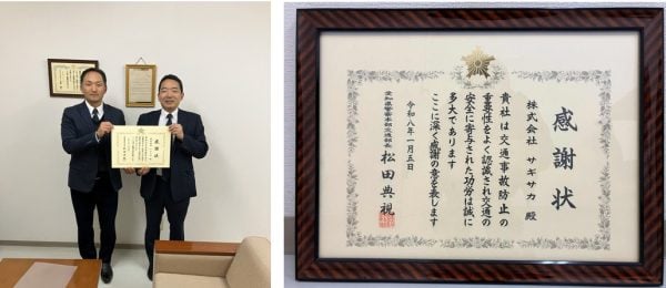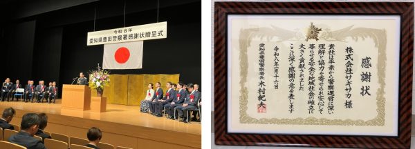 愛知県警察様より感謝状をいただきました。