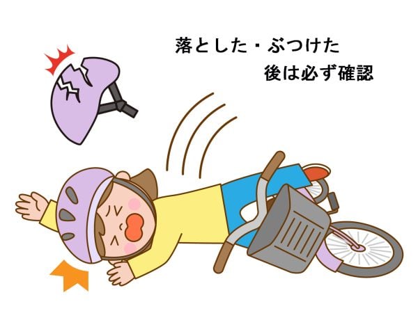 場合は、本体のひび割れや変形がないか、あごひものほつれ・脱着ストラップの破損など、