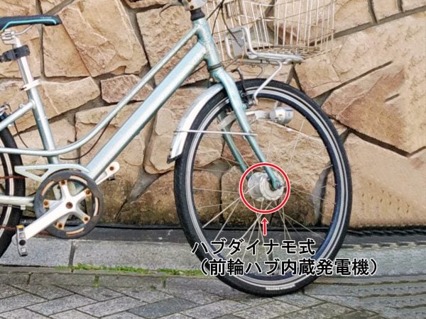 ④ ハブダイナモ式(前輪ハブ内蔵発電機)