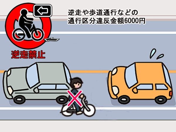 ▼逆走や歩道通行などの通行区分違反金額6000円