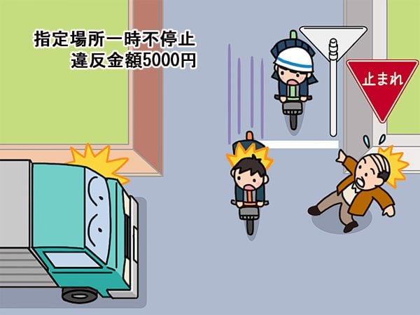 「止まれ」などの標識がある場所で、一時停止を怠る行為。